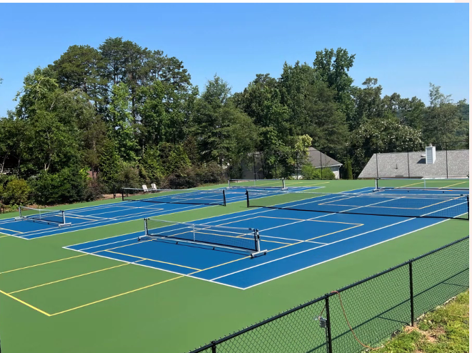 Pickleball and tennis are favorite pastimes in the community, with recently updated courts available for residents and their guests. The courts offer a flexible configuration of two tennis courts or 4 pickleball courts.
